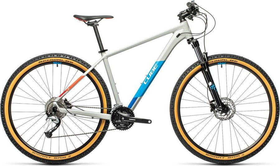 A CUBE AIM SL 2021 é uma Mountain Bike Hardtail em alumínio designada para a prática do Cross Country. Vem equipada com o grupo Shimano Alivio de 27 velocidades (3x9). Possui freio hidráulico e trava remota guidão. A bike tem o peso aproximado de 14,4 kg.